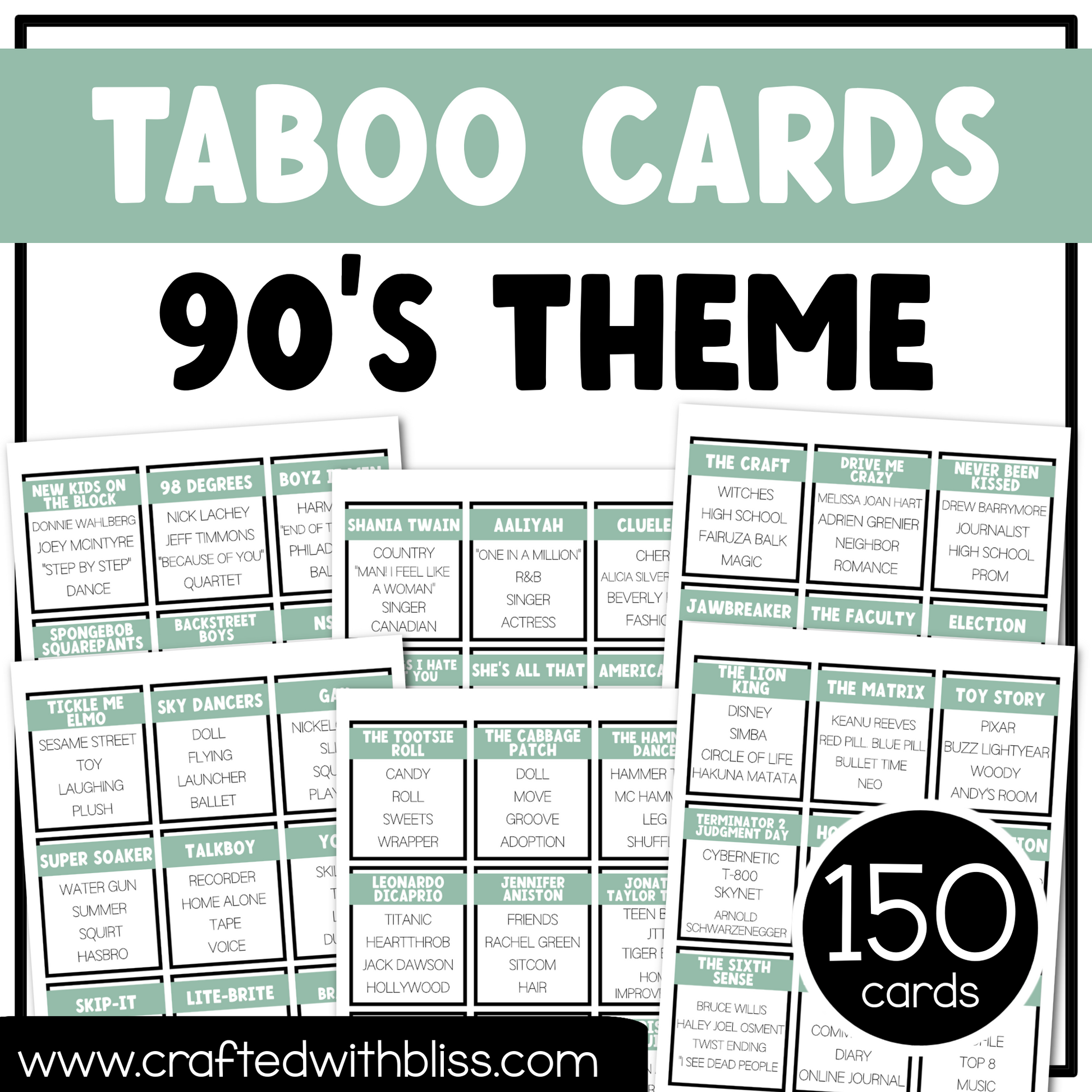 90's Theme Taboo Party Game 150 Card Fun Friday Ice Breaker Brain Break Classroom Forbidden Words