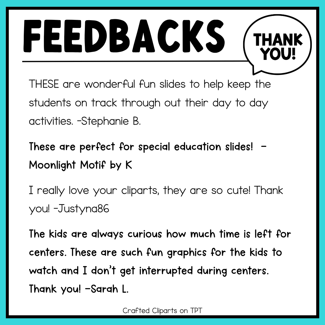 - Play the video timers on your computer or smartboard to keep students on schedule.