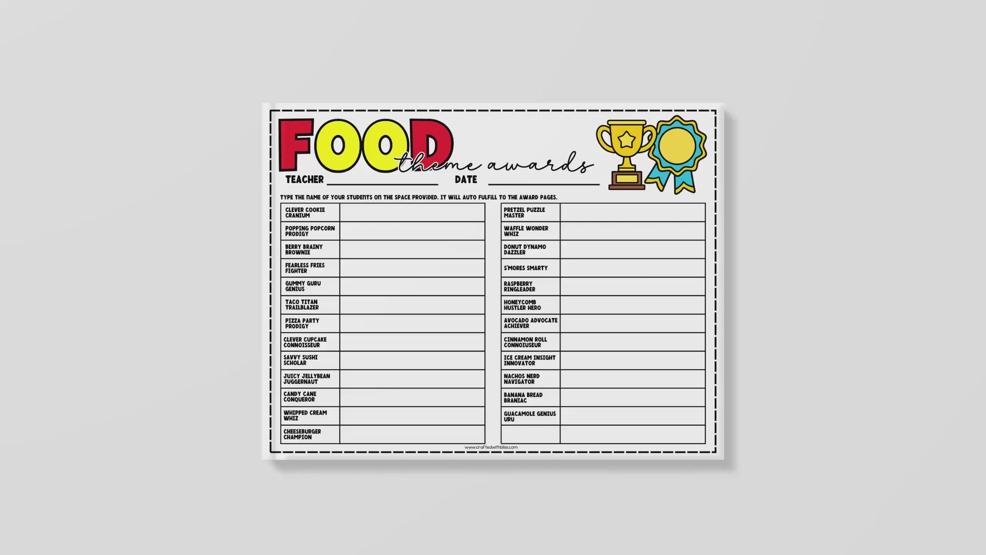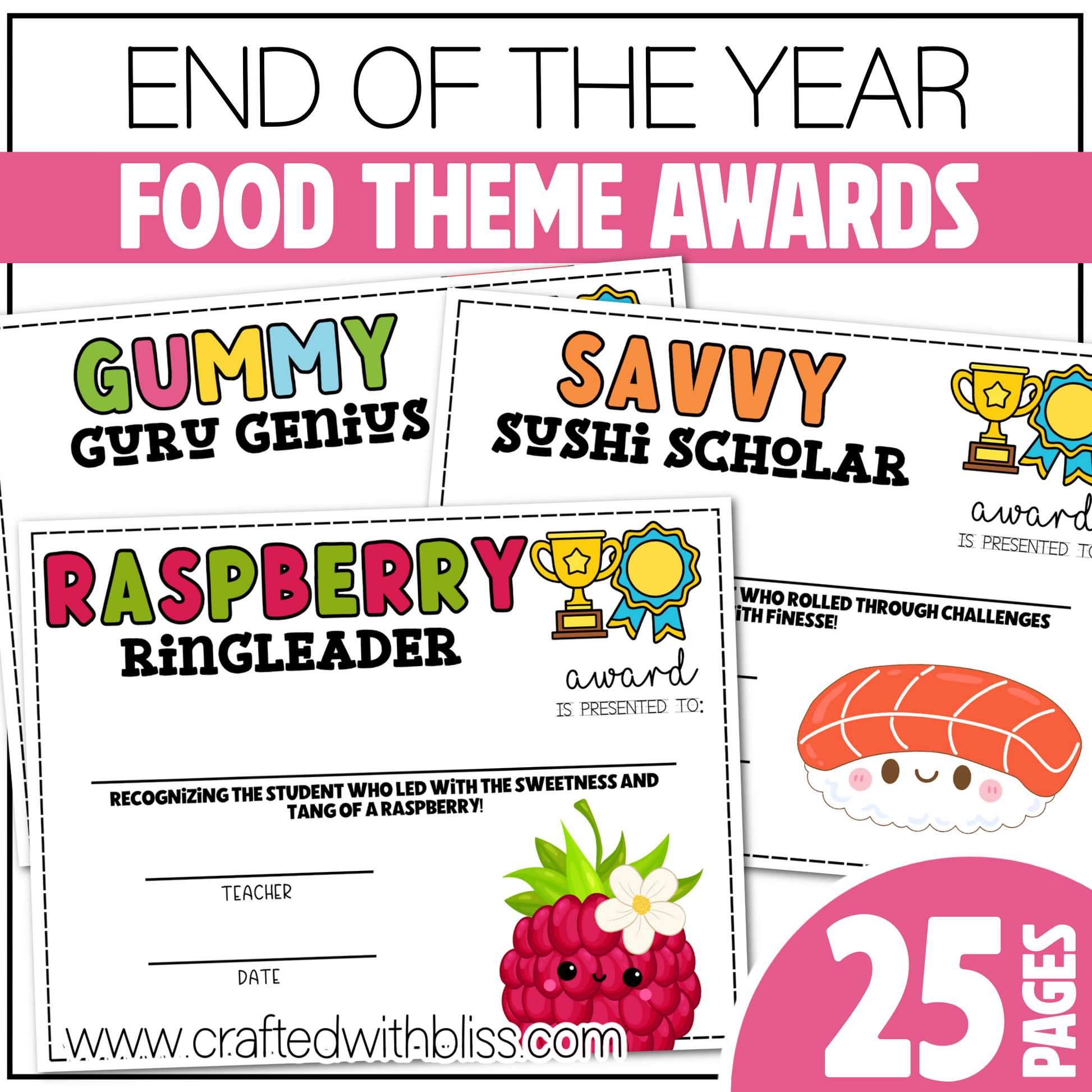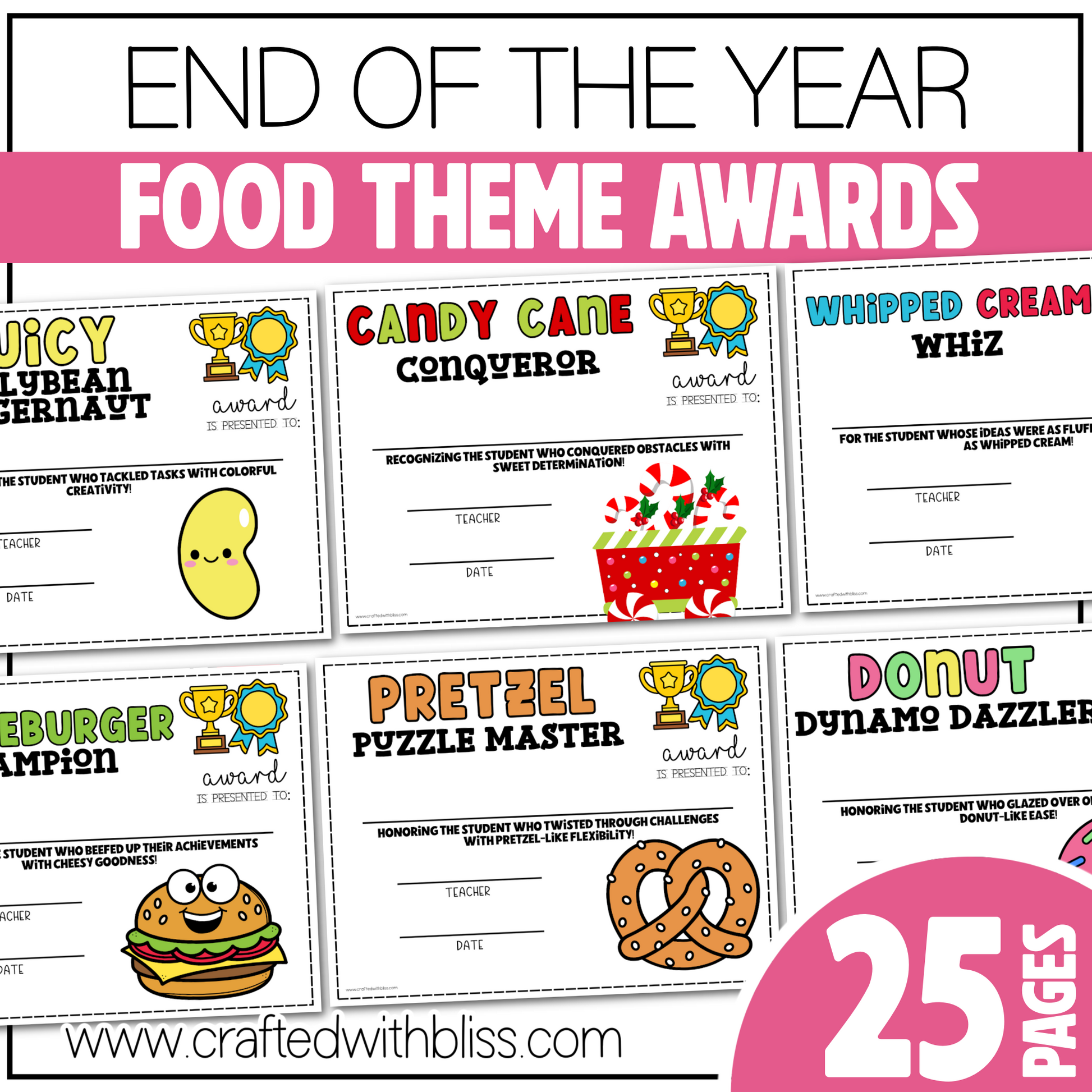 Celebrate the achievements of your students with these customizable end-of-year awards certificates featuring a delightful food theme.