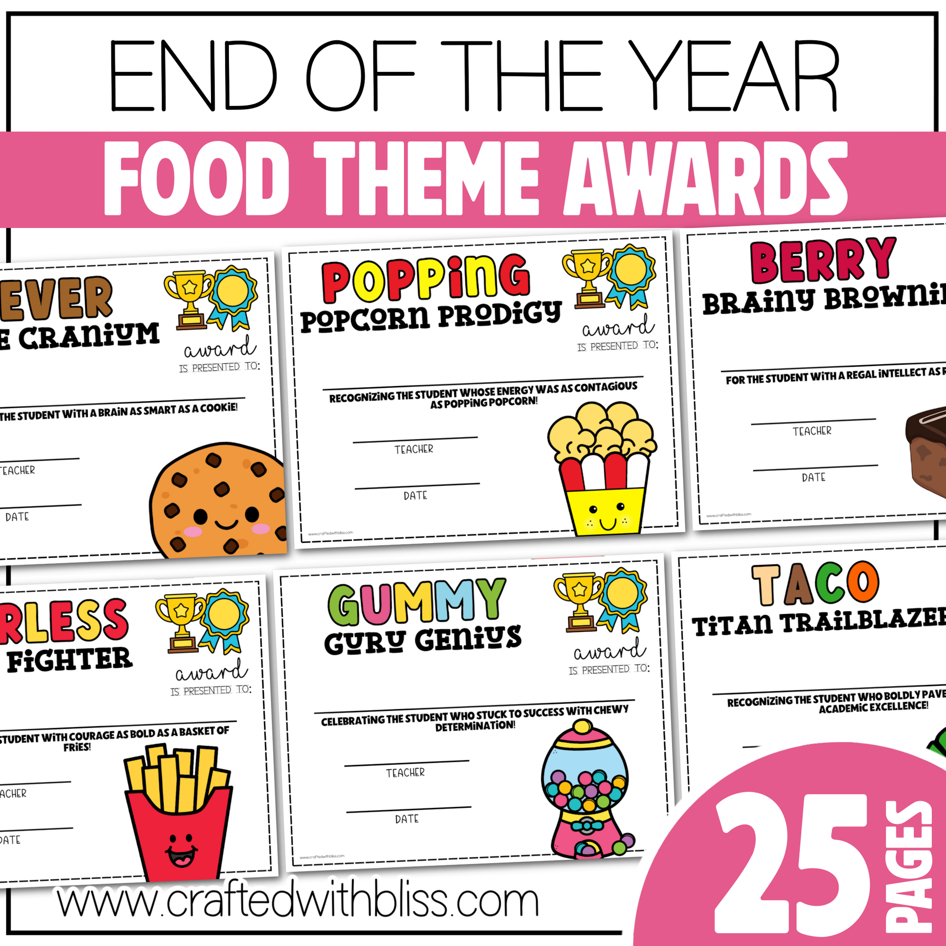 Editable End of the Year Awards Classroom Certificate Food Theme