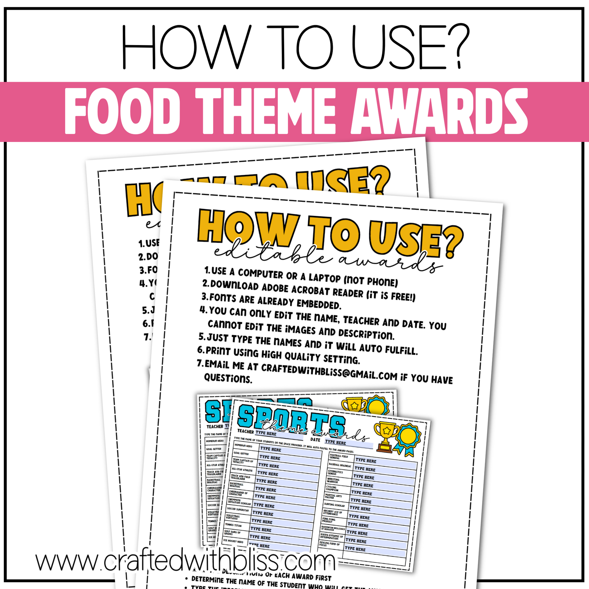 - Editable End of the Year Awards Classroom Certificates (Food Theme)