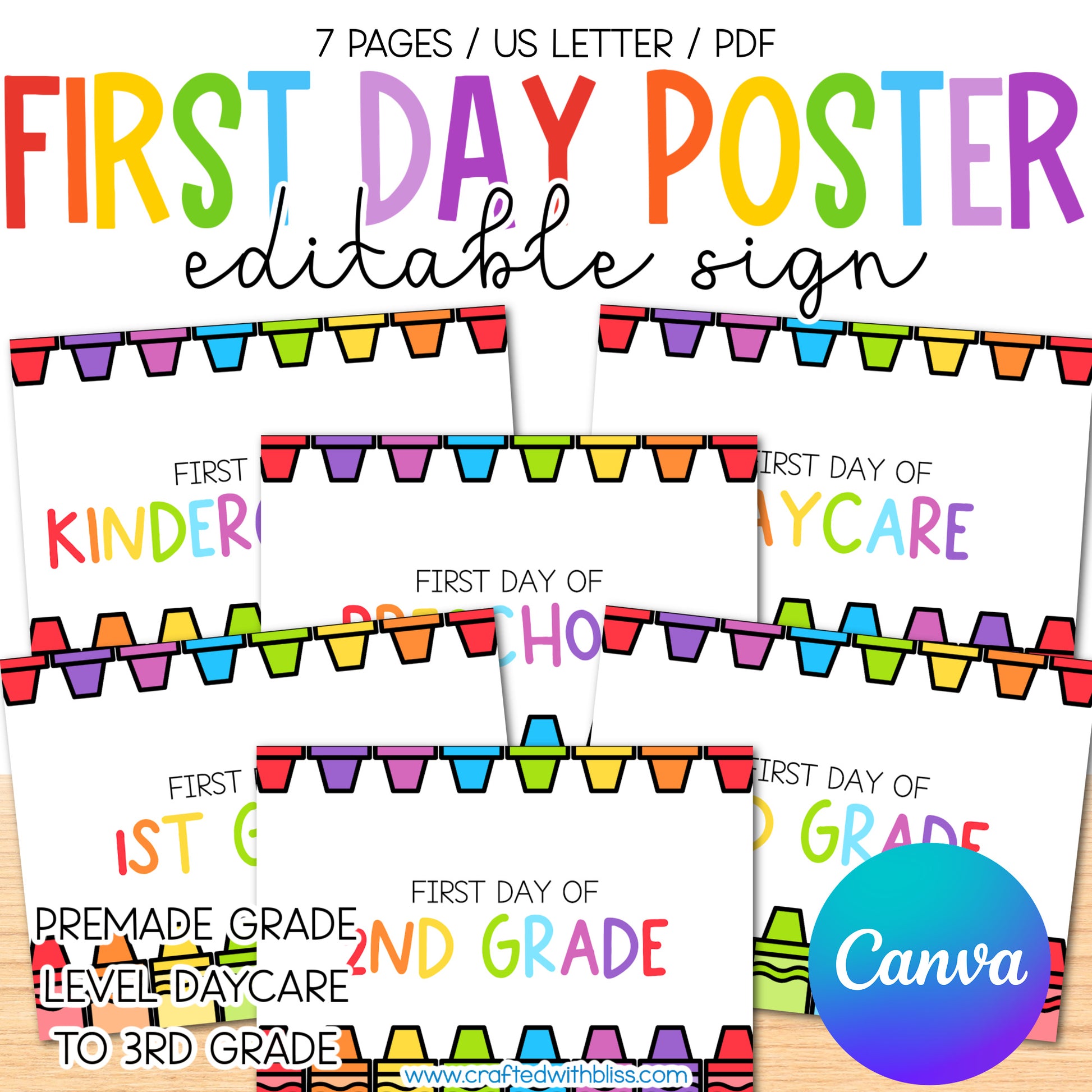 Editable First Day of School Poster Rainbow Theme | Canva Template | Rainbow