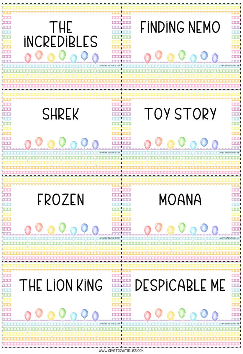 Print the Game Night Charades cards.