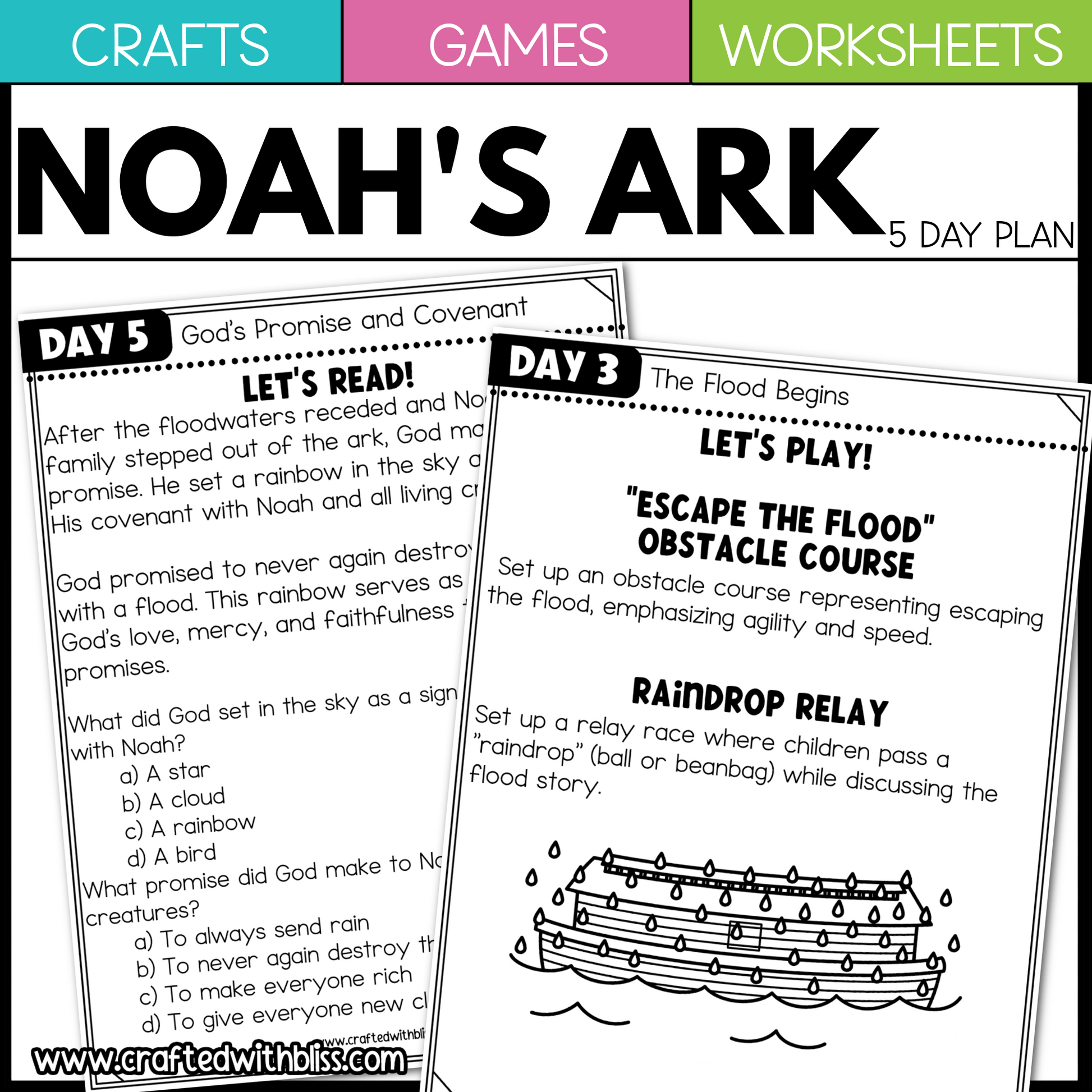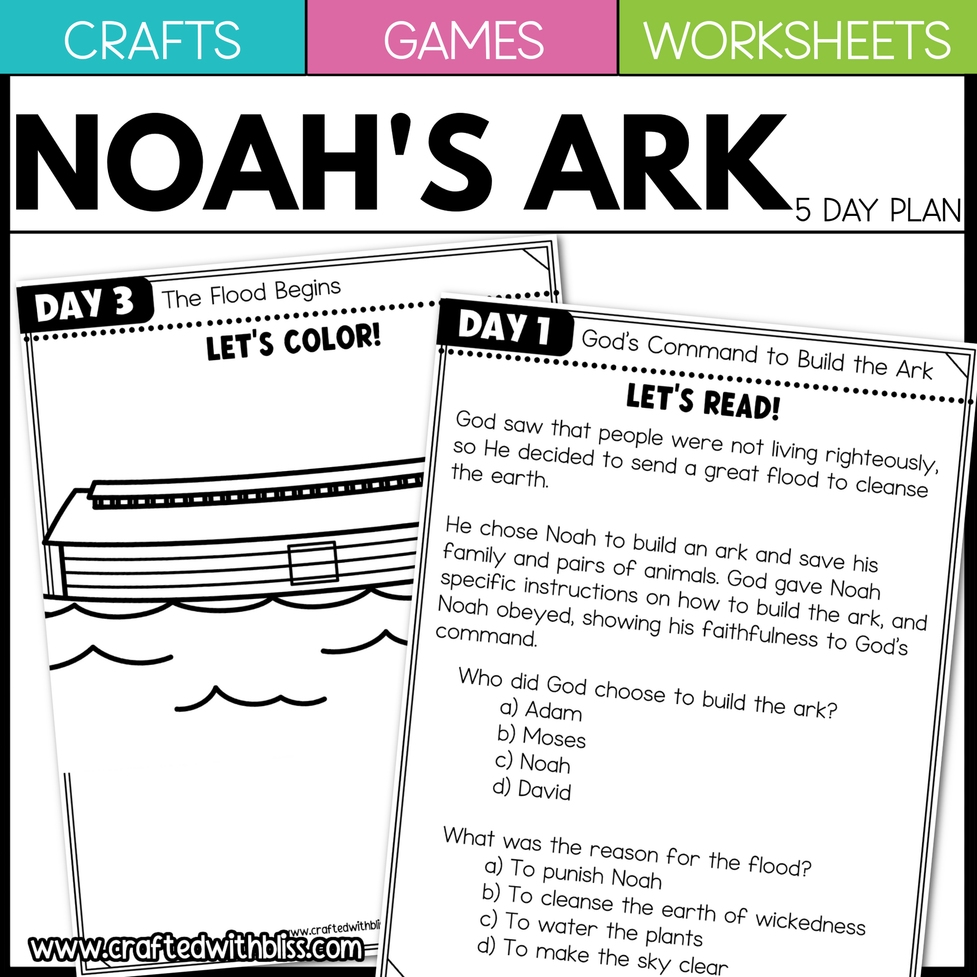 Download the Noah's Ark Bible Story Worksheet Games Crafts now and make learning about this beloved biblical story both enjoyable and educational for your young learners!