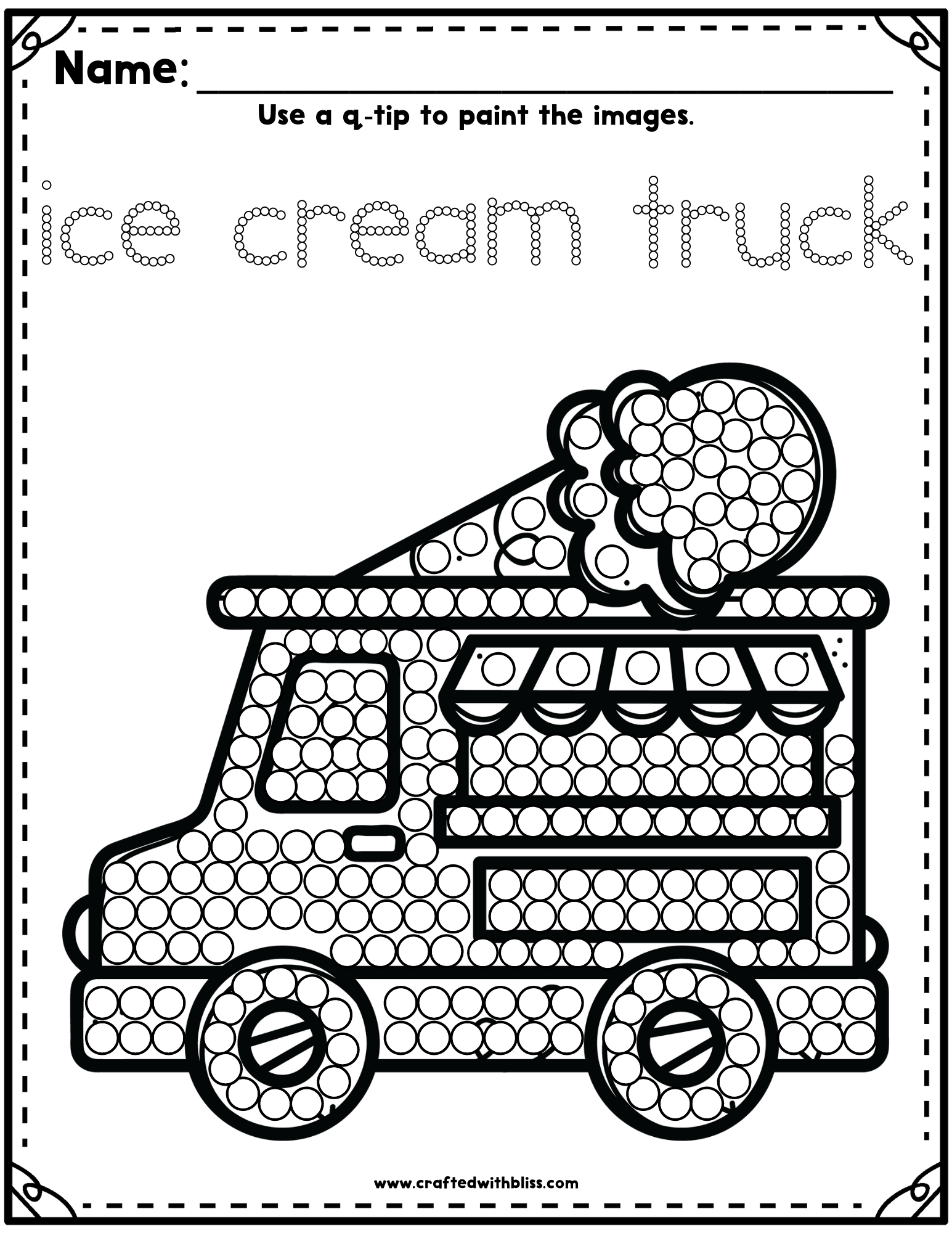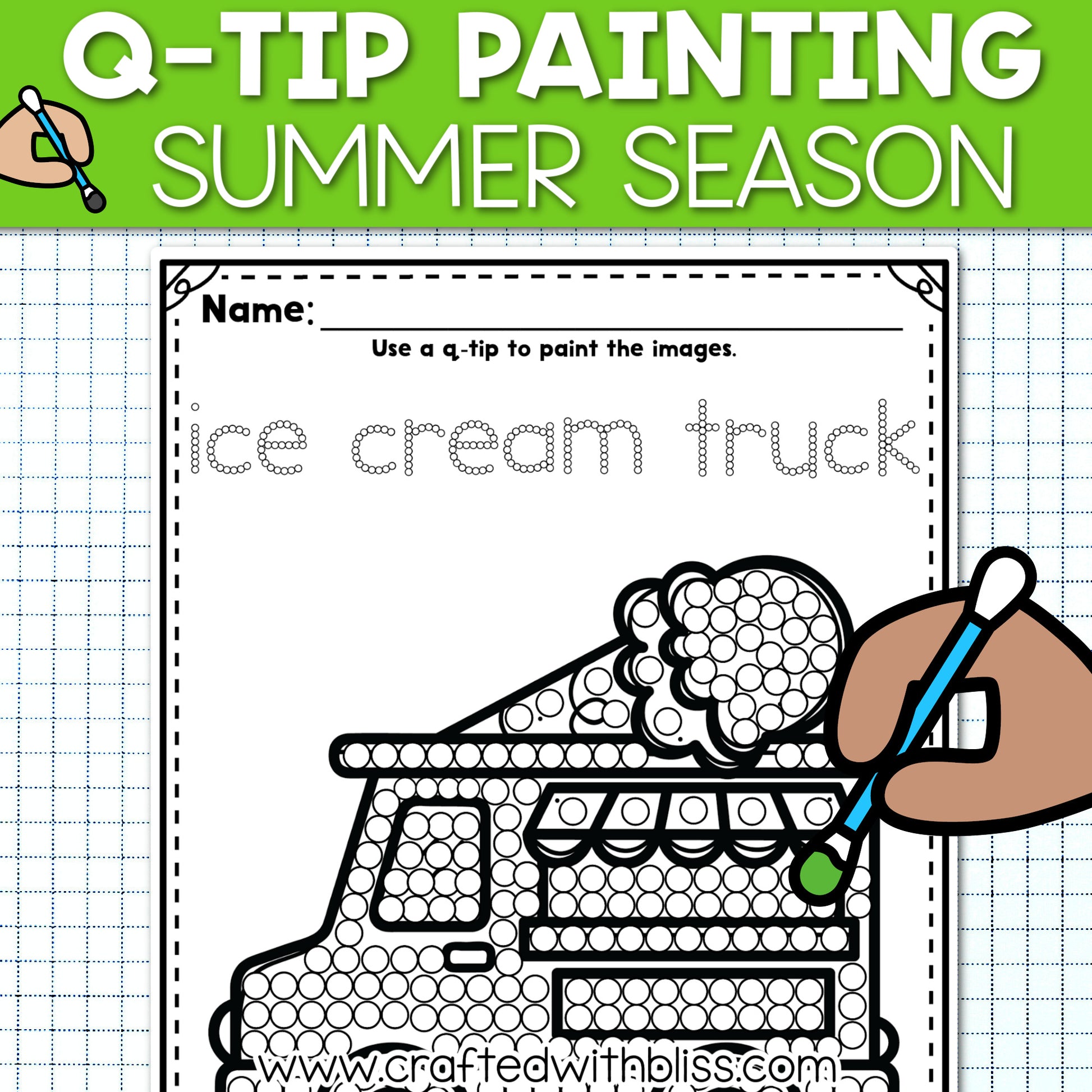 Come and celebrate with this q-tip painting activity. Summer Q-Tip printable is a fun way to improve fine motor skills. This can also improve the creativity of the students and motor coordination. We prepared 10 different images that your students/kids can do.