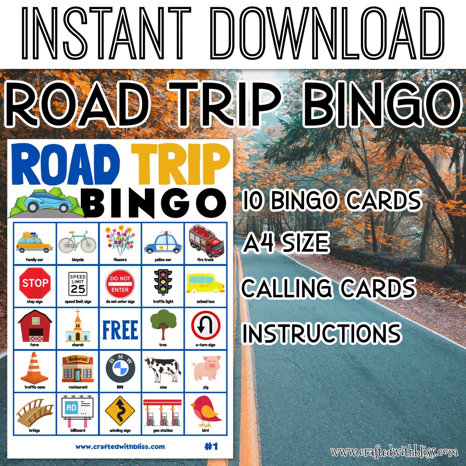 This file has Road Trip Calling Cards, Road Trip Bingo Cards, and Road Trip Instructions. We have prepared 10 Road Trip BINGO CARDS!