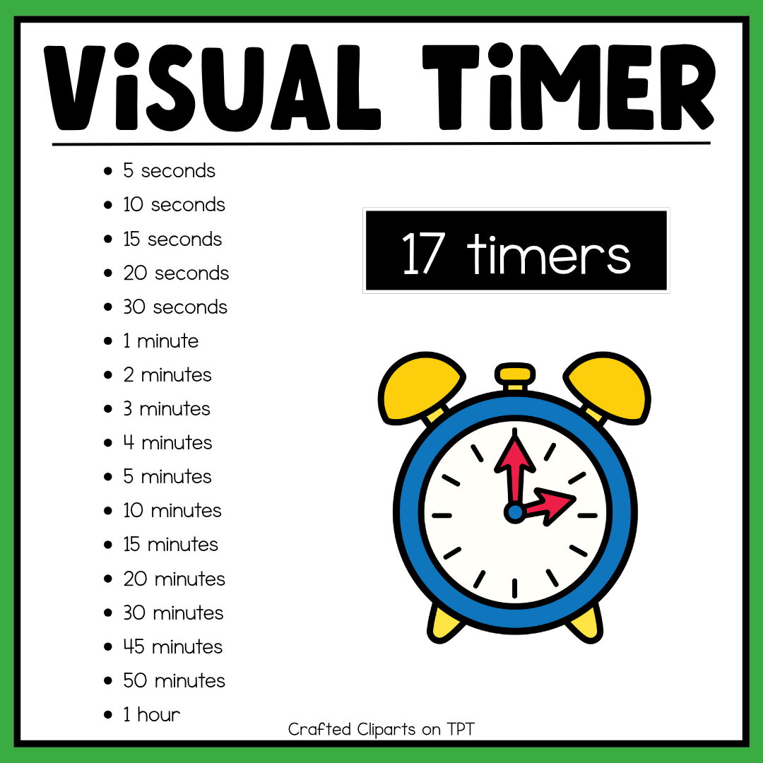 - Display the timer during activities to help manage time efficiently and keep students focused.