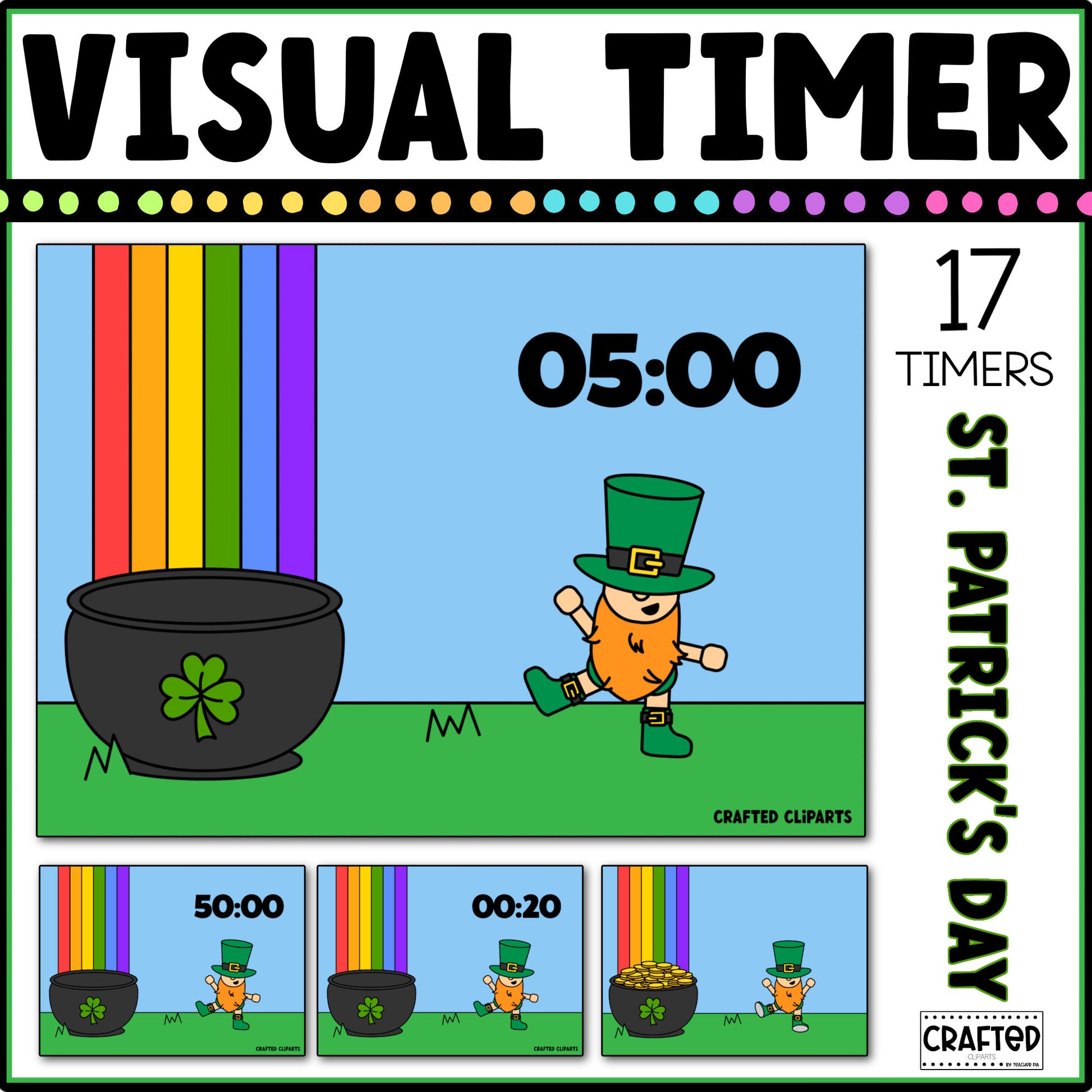 Celebrate St. Patrick's Day while keeping your classroom on track with our St. Patrick's Day Visual Timer PowerPoint!