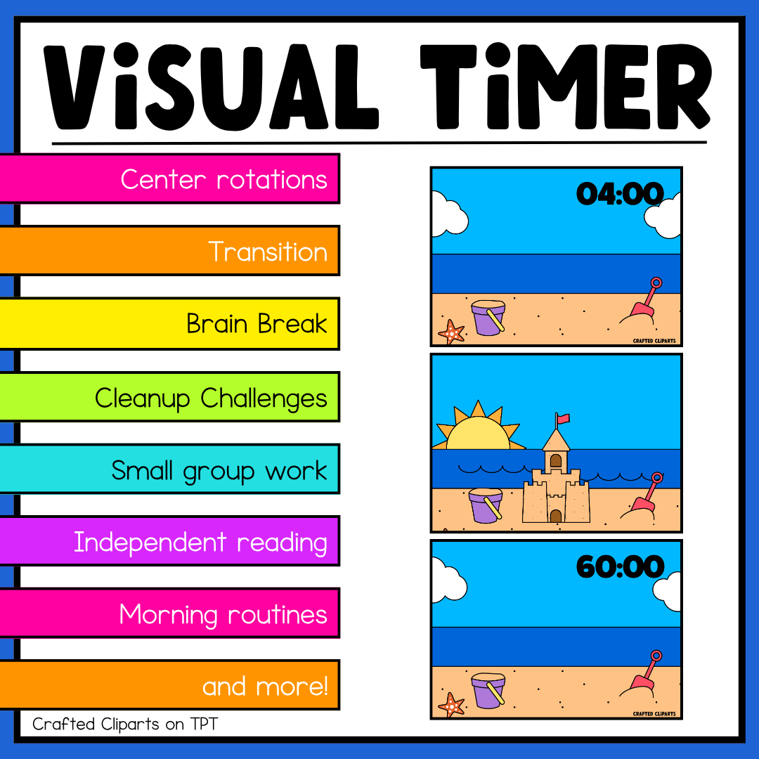Download the Summer Visual Timer Countdown Classroom Management Tool today and elevate your classroom experience with effective time management and engaging transitions!