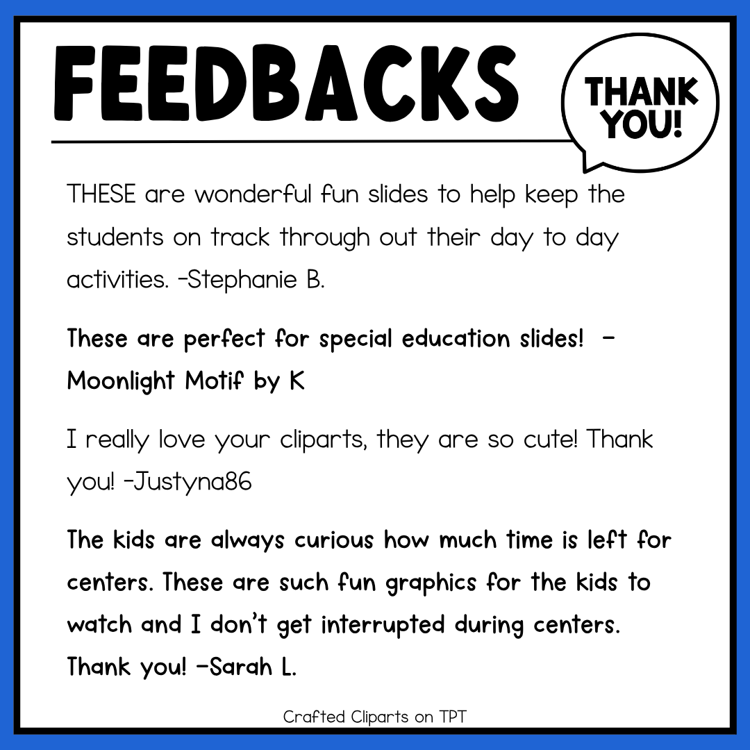 - Play the video timers on your computer or smartboard to keep students on schedule.